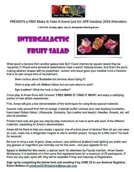 I would like to thank everyone that participated and joined us in the fun for GPR Seminar 2018, Days of Vines and Stitches. All of the work and time put in to planning the event by the seminar committee was obvious – and helped to make it such a success! I would also like to say thank you to our Faculty – you were awesome!