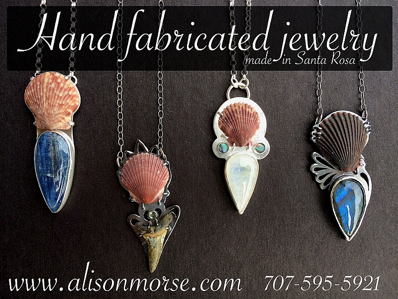 Wearable or otherwise, each piece aims to capture the viewer in its details, bringing them into my miniature world. I like to incorporate found objects such as seeds and shells with gemstones, metal and beads. Many of my pieces depict animal or plant life or are inspired by it in their design. Each piece is hand fabricated using traditional silversmith techniques at my home studio in Santa Rosa, California.